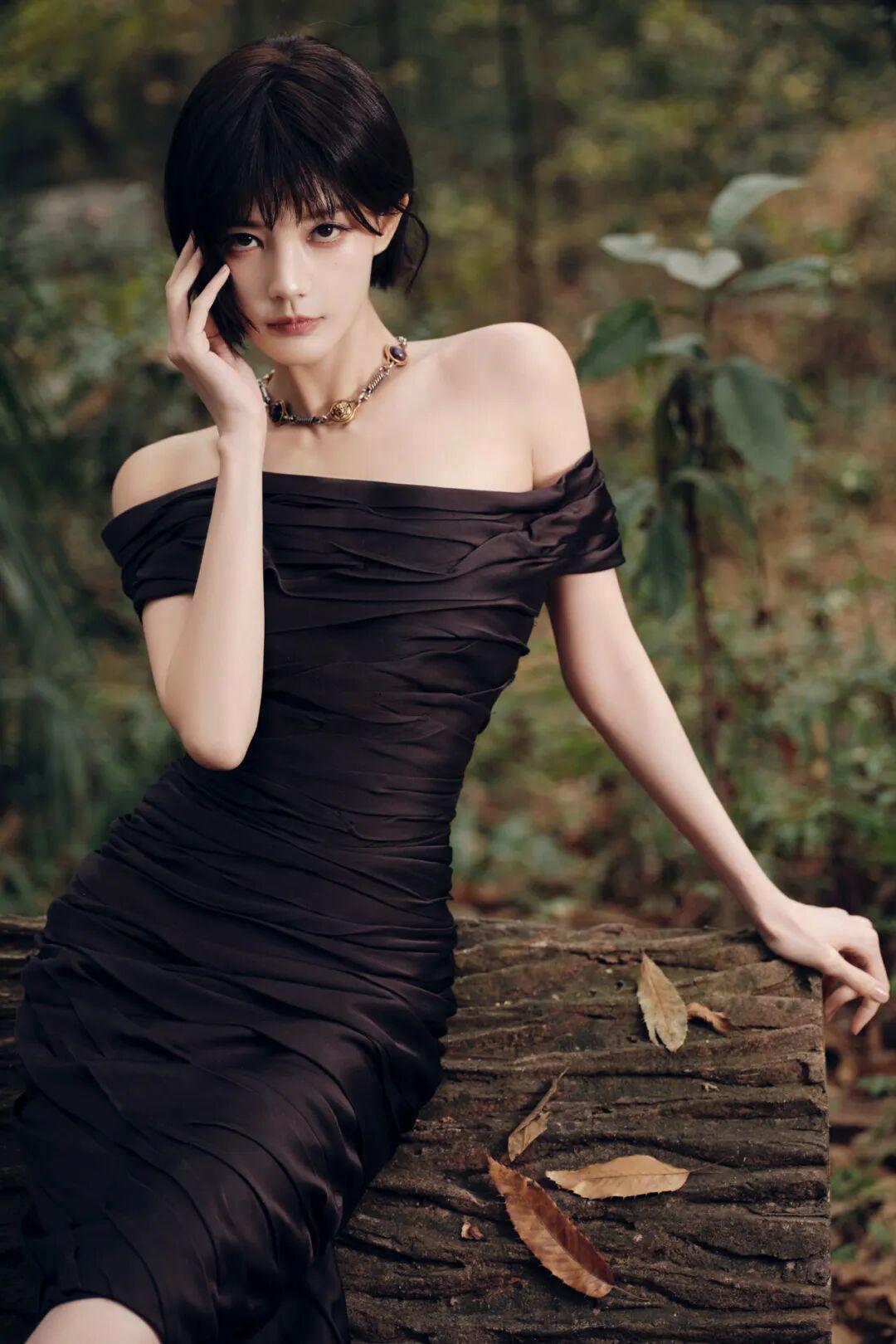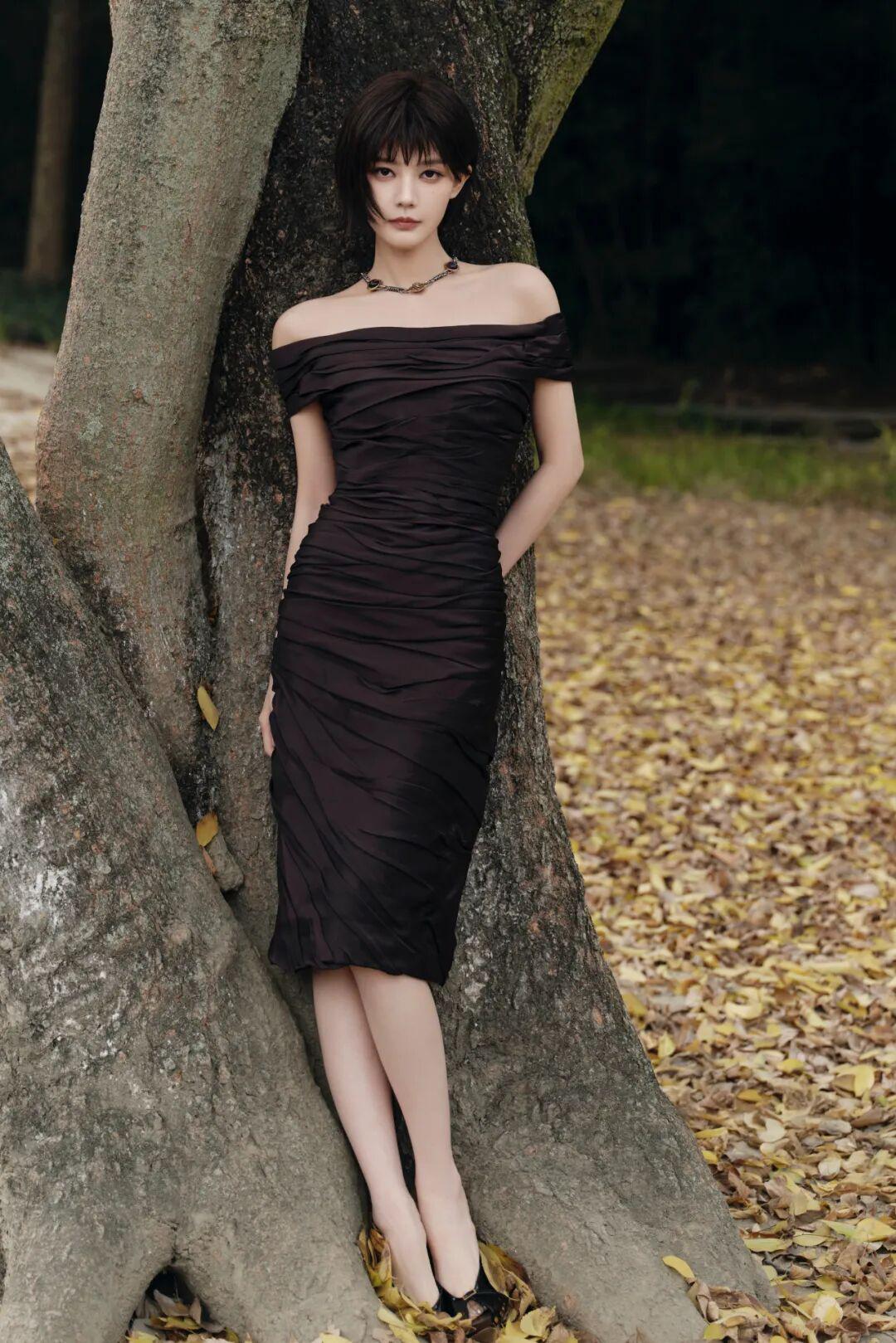 开云官方网站-李一桐短发配露肩裙,好美好迷人!